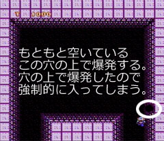 ●【バグ3】爆弾を穴の上に設置すると、主人公がどこにいようが爆発と同時に穴に入ってしまう。