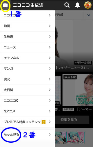 サイドメニューが表示されるので、「もっとみる」を選択します。