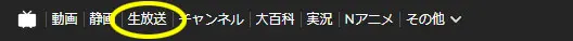 ニコニコ生放送上部メニューより、生放送を選択します。