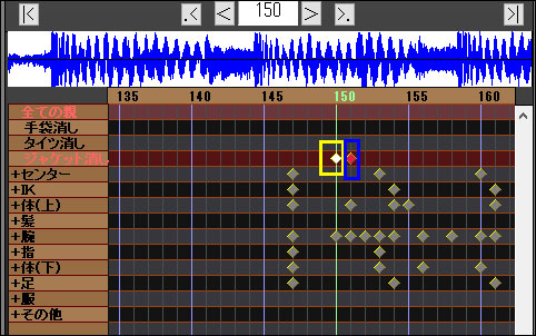 登録することで150フレームのジャケット消しの行に、上図と同じ、ひし形が表示されます。