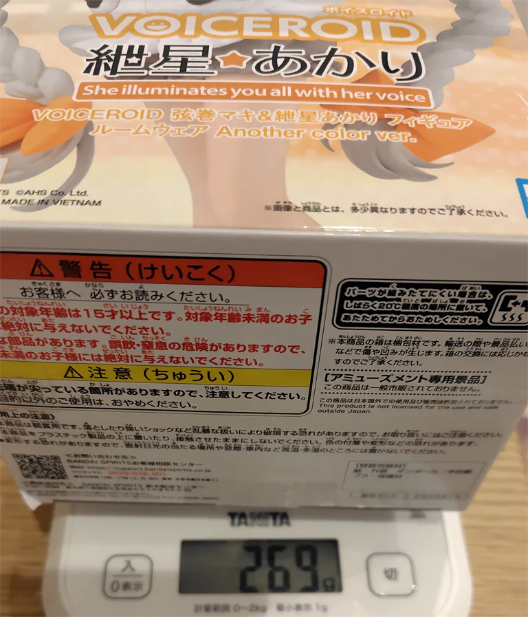 紲星あかりフィギュアの箱とフィギュア本体の合計の重さ